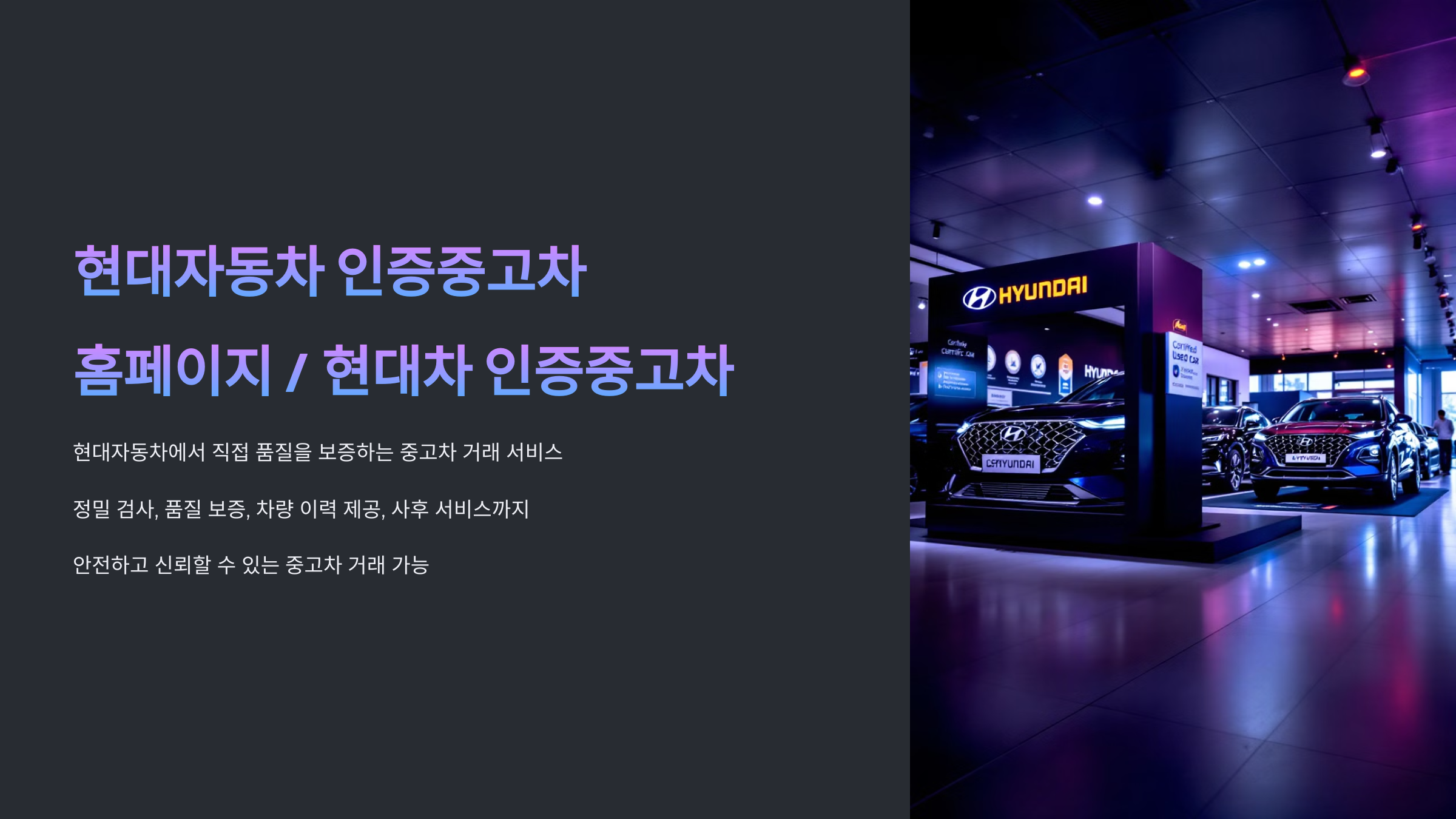 이제 여러분도 현대자동차 인증중고차를 통해 안전하고 믿을 수 있는 중고차 거래를 경험하세요! 🚗🔥