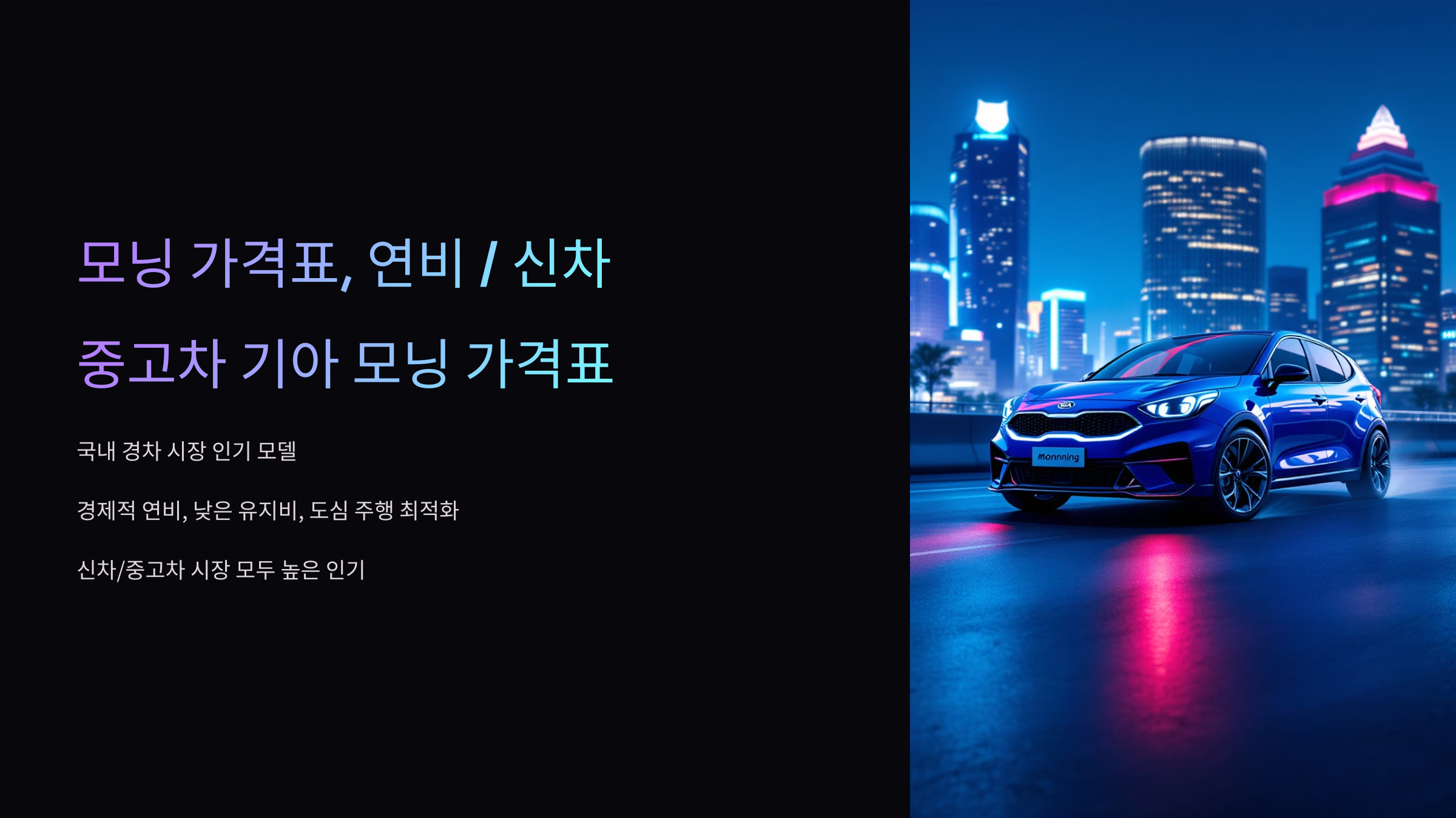 이번 글에서는 기아 모닝의 신차 및 중고차 가격표, 연비, 유지비, 구매 가이드, 유지보수 팁, 경차 혜택 정보까지 자세하게 분석해 보겠습니다. 😊