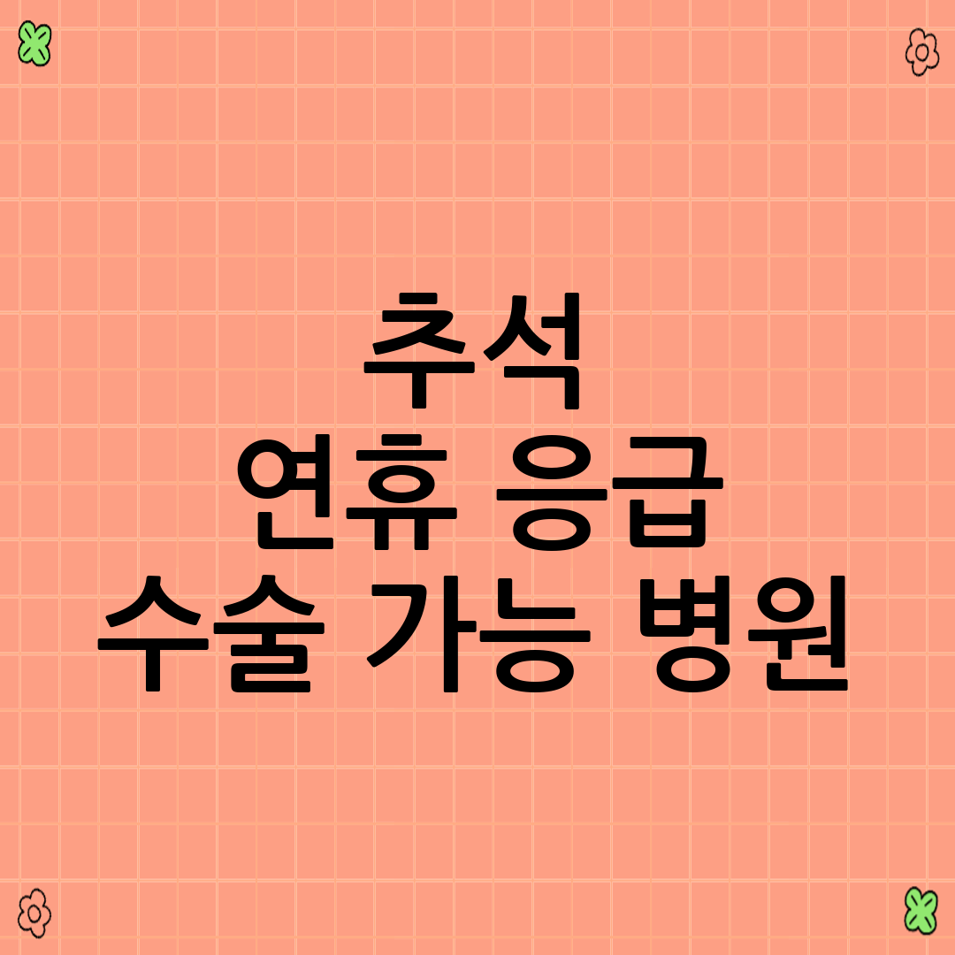 추석 연휴 응급 수술 가능 병원 찾는 방법 완벽 가이드: 건강하게 명절 보내기