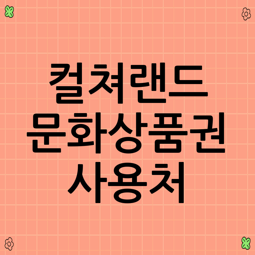 - 서점: 교보문고, 영풍문고, 반디앤루니스 등 대형 서점에서 도서 구매 시 사용할 수 있습니다. 계산대에서 컬쳐랜드 상품권을 제시하면 됩니다.