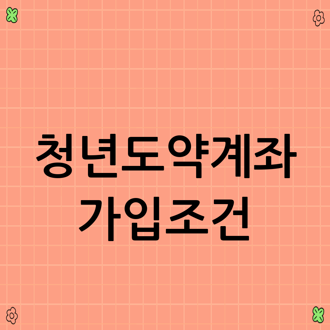 1. Q: 청년도약계좌 가입 조건이 어떻게 되나요? A: 만 19세 ~ 34세, 총 급여 7,500만원 이하 & 가구소득 중위 180% 이하, 직전 3개년도 중 1회 이상 금융소득 2,000만원 초과 시 가입 불가합니다.