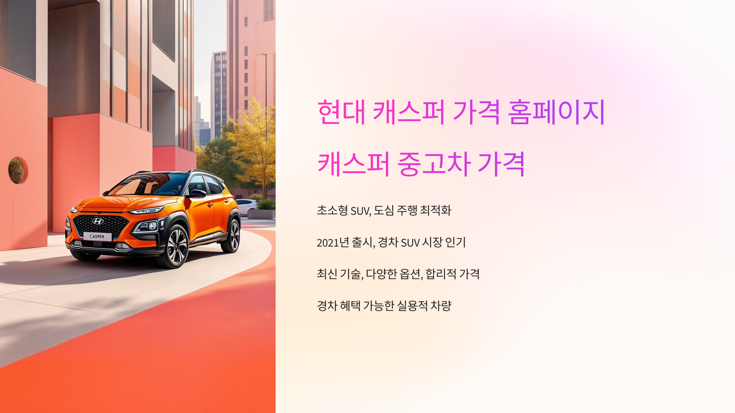 🚗 현대 캐스퍼, 실용성과 경제성을 갖춘 최고의 초소형 SUV! 지금 확인해보세요!