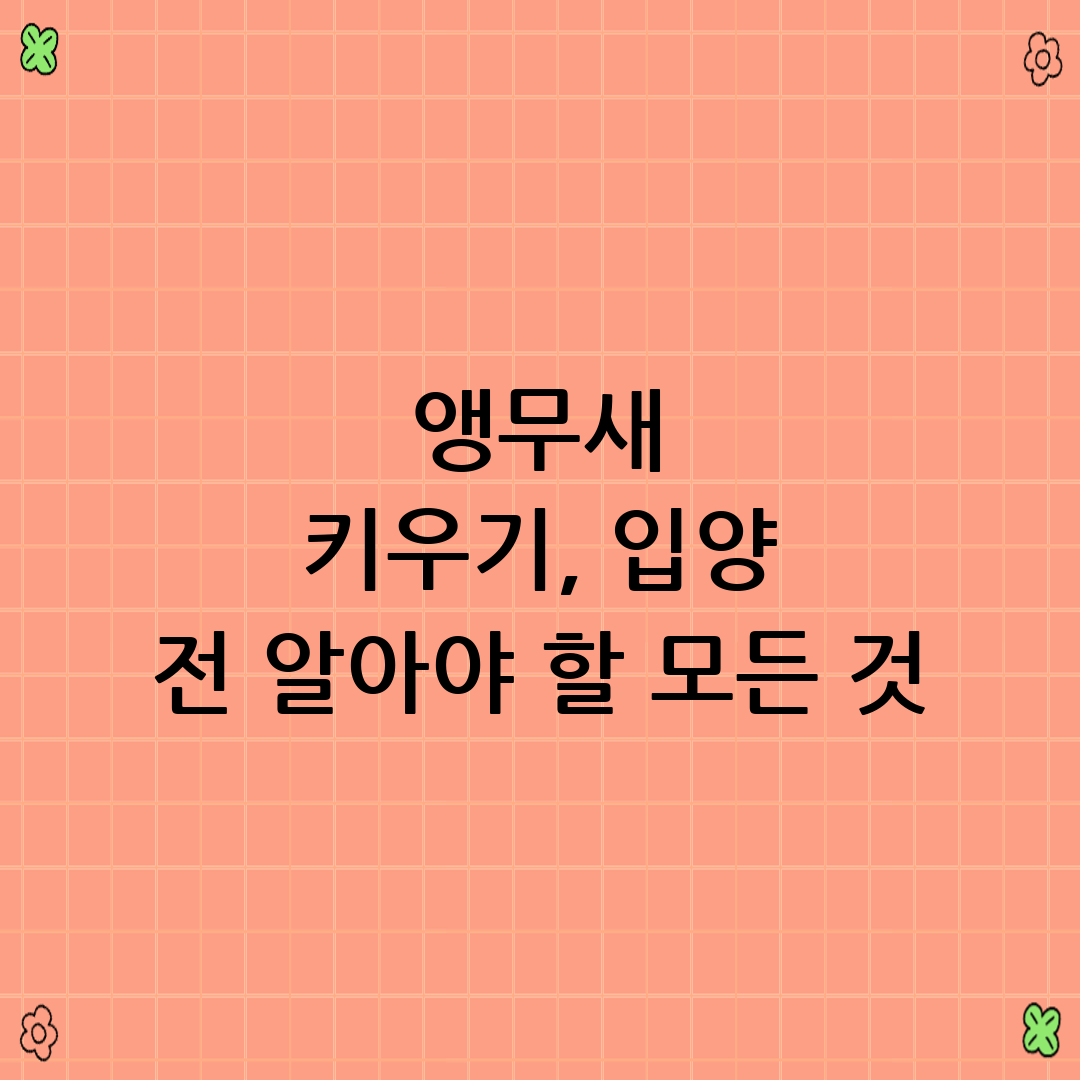 | 사랑앵무 | 소형 | 온순, 호기심 많음 | ~10년 | 중간 | 비교적 저렴한 분양가 |