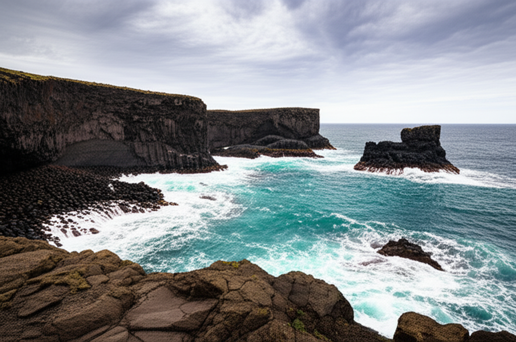 동쪽 여행의 시작은 단연 성산일출봉입니다. 유네스코 세계자연유산으로 등재된 이곳은 일출 명소로 유명하며, 정상에서 바라보는 풍경은 그야말로 장관입니다. 수많은 세월이 빚어낸 거대한 분화구와 그 너머로 펼쳐지는 푸른 바다, 그리고 떠오르는 해의 장엄함은 평생 잊지 못할 감동을 선사합니다. 성산일출봉을 등반한 후에는 인근의 광치기 해변을 방문해보세요. 성산일출봉을 배경으로 검은 바위와 푸른 바다가 어우러져 아름다운 풍경을 자랑하며, 봄에는 유채꽃이 흐드러지게 핍니다. 특히 썰물 때 드러나는 검은 현무암 지대는 독특한 매력을 뽐냅니다. 다음으로는 섭지코지로 이동하여 해안 절경을 따라 산책하며 제주의 또 다른 매력을 발견할 수 있습니다. 드라마 촬영지로도 유명한 섭지코지는 기암괴석과 푸른 초원이 어우러져 그림 같은 풍경을 연출합니다.